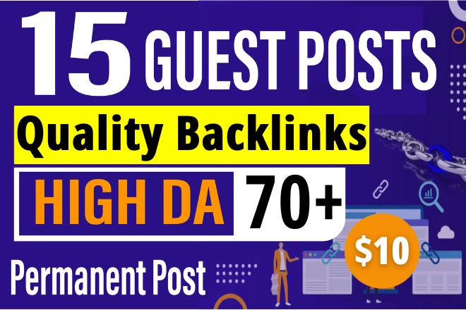 15 High quality Guest posting SEO Dofollow Backlinks All Sites DA 70+